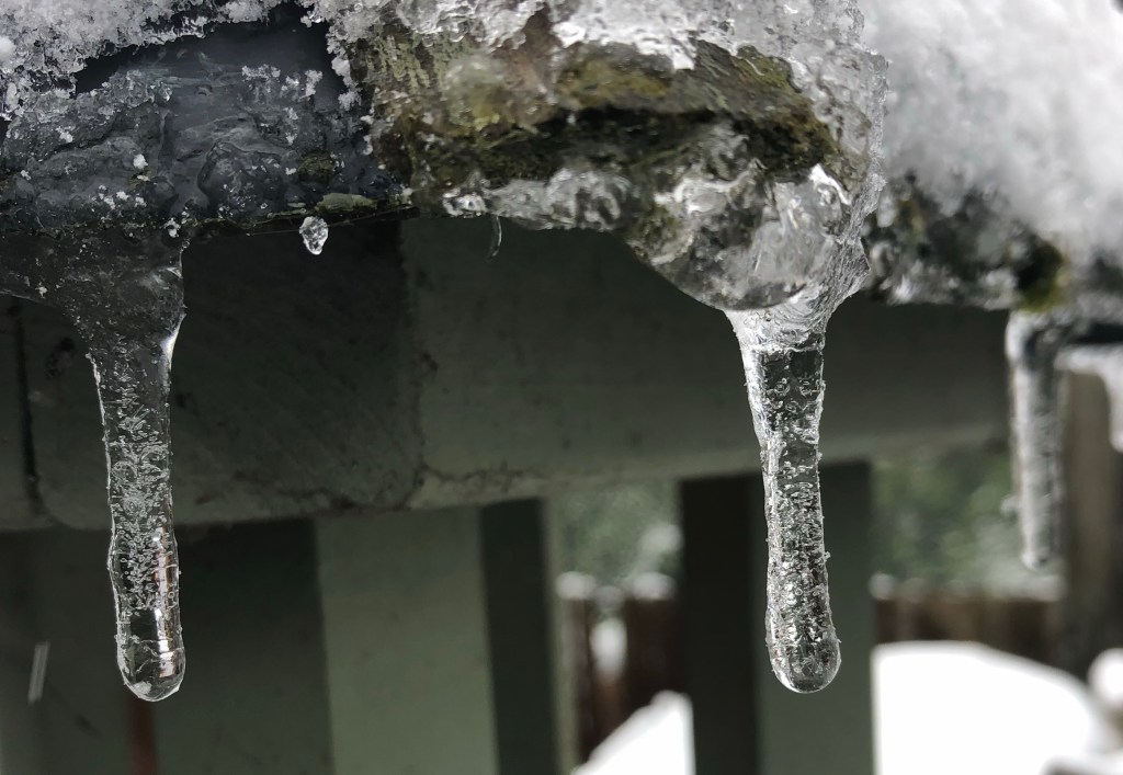 Photo taken by Katie during winter 2021. Icicles formed during the night on the bird feeder in the garden.